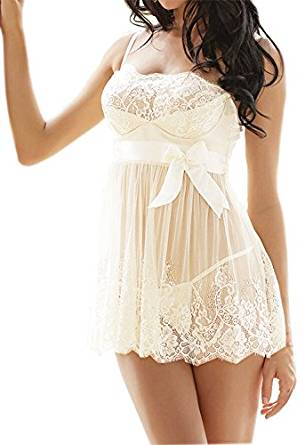 RZS Donna Esotico Lingerie Pizzo e Mesh Babydoll Set [Grande Size] [2 pezzi] Biancheria Intima Confortevole